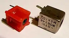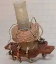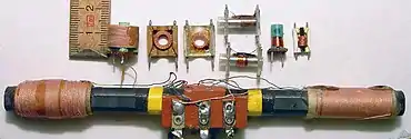 - Pour constituer des circuits résonants[alpha 3], on utilise souvent des bobines à inductance ajustable. Par exemple :