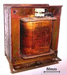 Deux inductances (ou plus) à proximité qui ont un flux magnétique couplé (inductance mutuelle) forment un transformateur, qui est un composant fondamental de tout réseau électrique. L'efficacité d'un transformateur peut diminuer lorsque la fréquence augmente en raison des courants de Foucault dans le matériau du noyau et de l'effet de peau sur les enroulements. La taille du noyau peut être réduite à des fréquences plus élevées. Pour cette raison, les avions utilisent un courant alternatif de 400 hertz plutôt que les 50 ou 60 hertz habituels, ce qui permet un grand gain de poids grâce à l'utilisation de transformateurs plus petits[7]. Les transformateurs permettent des alimentations à découpage qui isolent la sortie de l'entrée.