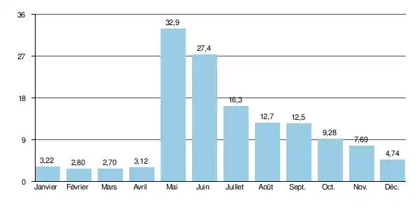 | Débit moyen | 13,0 m3/s |