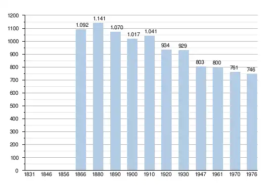 - Sources : INS, rem. : 1831 jusqu'en 1970 = recensements, 1976 = nombre d'habitants au 31 décembre.