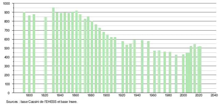518 hab. (2021 en diminution de 5,13 % par rapport à 2015)
