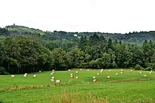 L'occupation des sols de la commune, telle qu'elle ressort de la base de données européenne d’occupation biophysique des sols Corine Land Cover (CLC), est marquée par l'importance des forêts et milieux semi-naturels (52,2 % en 2018), une proportion sensiblement équivalente à celle de 1990 (50,9 %). La répartition détaillée en 2018 est la suivante : forêts (47,3 %), prairies (33 %), zones agricoles hétérogènes (8,3 %), zones urbanisées (5 %), milieux à végétation arbustive et/ou herbacée (4,9 %), terres arables (1,4 %), eaux continentales[Note 3] (0,2 %)[15]. L'évolution de l’occupation des sols de la commune et de ses infrastructures peut être observée sur les différentes représentations cartographiques du territoire : la carte de Cassini (XVIIIe siècle), la carte d'état-major (1820-1866) et les cartes ou photos aériennes de l'IGN pour la période actuelle (1950 à aujourd'hui)[Carte 1].