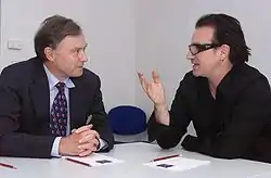 Depuis 1999, il prend une part active à la campagne visant à annuler la dette des pays du tiers monde. En mai 2002 il emmène le secrétaire du trésor des États-Unis, Paul O'Neill, dans quatre pays d'Afrique. Cette même année, il crée une organisation appelée « DATA » (pour Debt, Aids, Trade in Africa) dont le but est d'informer sur les dettes des pays d'Afrique, l'épidémie du SIDA et les règles de commerces inéquitables. En 2003, il sera récompensé d'un Golden Globe de la meilleure chanson originale à Beverly Hills en Californie pour The Hands That Built America.