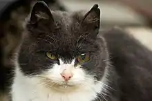 Un chat borgne avec une prothèse oculaire.