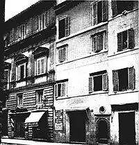 En avant, du côté nord, au n. 46, Buto, médecin actif sous le règne de Paul III, fit ériger un palazzetto dont la façade était ornée des bustes de Galien et d'Hippocrate et dont les frises des trois fenêtres de l'étage noble portaient l'inscription « DEO, PAULO ET LABORIBUS » (« À Dieu, Paul (III) et (mes) œuvres »). Ce bâtiment a été démoli après 1938[26].