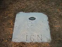 Une borne géodésique parmi tant d'autres sur le territoire français (ici au mont des Avaloirs)