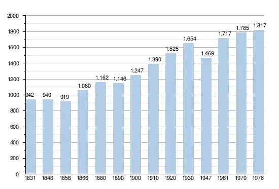 - Sources : INS, Rem. : 1831 jusqu'en 1970 = recensements, 1976 = nombre d'habitants au 31 décembre[2].