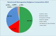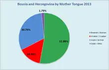 La Bosnie-Herzégovine est une république fédérale de près de 3,5 millions d'habitants, désignés comme Bosniens. Ceux-ci sont divisés en trois principaux groupes ethniques qui parlent la même langue slave méridionale : le chtokavien, un parler de ce que les linguistes nomment « diasystème slave du centre-sud », jadis appelé « serbo-croate » et aujourd'hui « BCMS » d'après ses trois noms officiels actuels, bosnien pour les Bosniaques, croate pour les Croates et serbe pour les Serbes (auxquels il faut ajouter les Monténégrins). Ces trois peuples sont désignés comme « peuples constitutifs » par la constitution, et définis d'après leur histoire et leurs traditions culturelles : musulmane sunnite pour les Bosniaques, chrétienne catholique pour les Croates et chrétienne orthodoxe pour les Serbes[10].