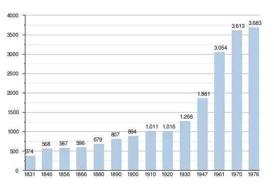 - Sources:INS, Rem:1831 jusqu'en 1970=recensements, 1976= nombre d'habitants au 31 décembre