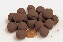 - les boulettes magnésiennes : avec addition d'olivine[5] ou de serpentine[12], pour atteindre une teneur en magnésie d'environ 1,5 %[5]. Leur résistance à froid à l'écrasement est médiocre (environ 180 kg/boulette)[12].
