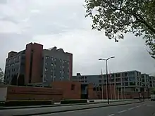 - no 24 : le bâtiment s'élève à l'angle de la rue des Bûchers. Il se compose de corps de bâtiment de différentes hauteurs, allant de deux à quatre étages. Ils sont couverts soit d'un toit à longs pans de tuile, soit d'un toit terrasse. Les façades alternent les murs-rideaux en verre et en brique.