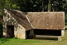 - Ancien presbytère de 1704 avec des ouvertures à linteaux délardés.