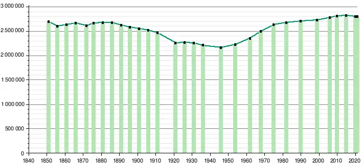Sa population s'élevait à 2 800 194 habitants en 2021, ce qui en faisait la troisième région la moins peuplée et la deuxième la moins densément peuplée (58,6 hab./km2).