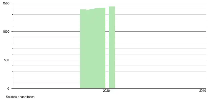 - Population municipale légale en vigueur au 1er janvier 2024, millésimée 2021, définie dans les limites territoriales en vigueur au 1er janvier 2023, date de référence statistique : 1er janvier 2021.