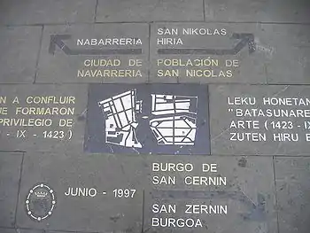Le bourg de San Nicolás a été construit à côté du bourg de San Cernin, ce qui a provoqué de nombreux conflits. De plan rectangulaire (appelée plan type bastide, semblable à celui Sangüesa et de Puente la Reina), il a l'église de San Nicolás comme bastion défense, non seulement face à une possible agression extérieure depuis les plaines, mais aussi en ce qui concerne la ville de San Cernín. Ses habitants sont aussi des francs, mais il y a une plus grande proportion d'oriundos du monde rural qu'à San Cernin.