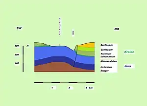 Coupe de l'anticlinal de Mareuil, au nord du Bassin aquitain.