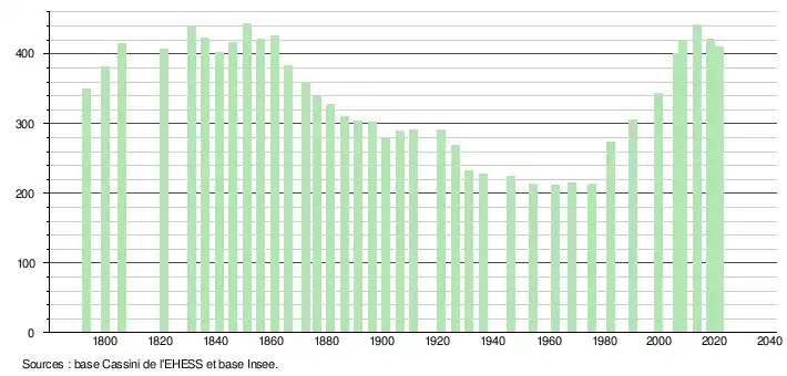 - Fiches Insee - Populations légales de la commune pour les années 2006, 2007, 2008, 2009, 2010, 2011, 2012, 2013, 2014, 2015, 2016, 2017, 2018, 2019, 2020 et 2021.