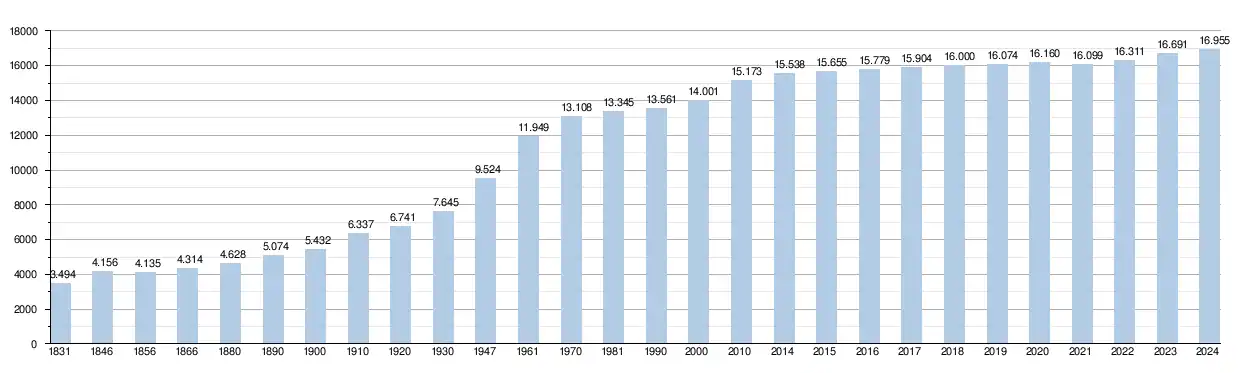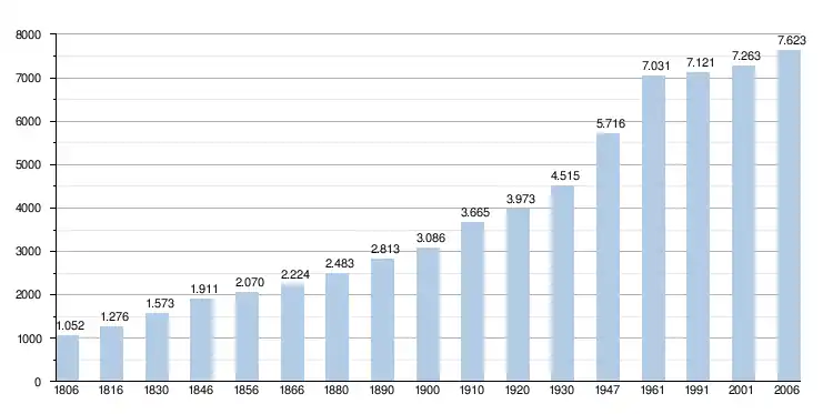 - Source : DGS - Remarque: 1831 jusqu'à 1981=recensement; depuis 1990=nombre d'habitants chaque 1er janvier[5]