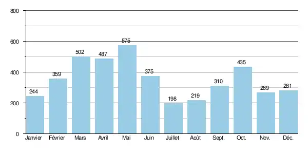 - V6155610 - Le Brégoux à Aubignan à 59 m d'altitude pour un bassin versant de 37 km2 en service de 1967 à 1988 soit 22 ans : module 0,155 m3/s[14].
