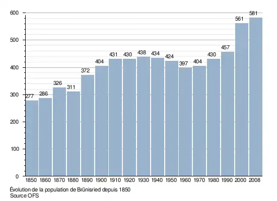 Le graphique suivant résume l'évolution de la population de Brünisried entre 1850 et 2008[4] :