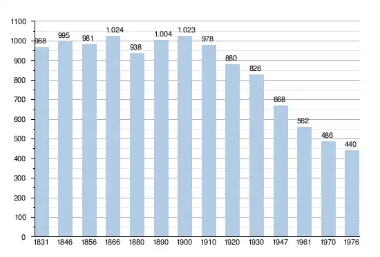 - Sources : INS, Rem. : 1831 jusqu'en 1970 = recensements, 1976 = nombre d'habitants au 31 décembre.