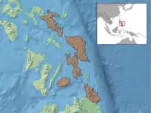 Cette espèce est endémique des Philippines. Elle se rencontre dans les îles de Samar, de Leyte, de Tintiman, de Tilmubo, de Lapinig Chico, de Lapinig Grande et dans le Sud de Luçon[2].
