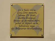 Fondée en 1664 à Strasbourg par Jérôme Hatt, c'est l’une des plus anciennes entreprises françaises. Kronenbourg tire son nom du quartier de Cronenbourg, à Strasbourg, où la brasserie Hatt s'est installée au milieu du XIXe siècle.