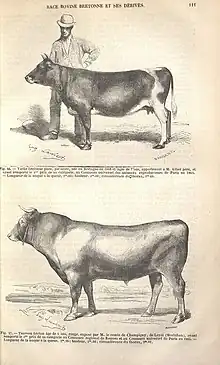 À partir de 1830, l'État français distribue des encouragements agricoles aux éleveurs[13]. L'effectif bovin breton est de 1 400 000 têtes au milieu du XIXe siècle[4]. La Bretonne Pie Noir, pas encore reconnue officiellement, est vraisemblablement la race bovine française la plus importante en nombre sous le Second Empire[14].