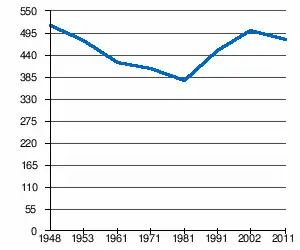 - (sr + en) « Livre 20 : Vue d'ensemble comparative de la population en 1948, 1953, 1961, 1971, 1981, 1991, 2002 et 2011, données par localités) » [PDF], Pages du recensement de 2011 en Serbie - Institut de statistique de la république de Serbie, (consulté le )