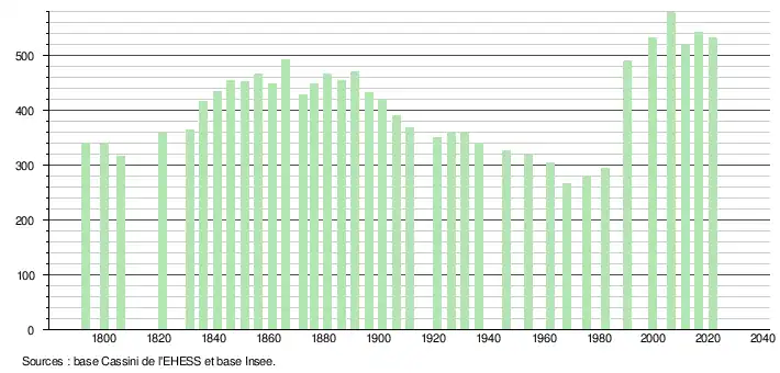 - Fiches Insee - Populations légales de la commune pour les années 2006, 2007, 2008, 2009, 2010, 2011, 2012, 2013, 2014, 2015, 2016, 2017, 2018, 2019, 2020 et 2021.