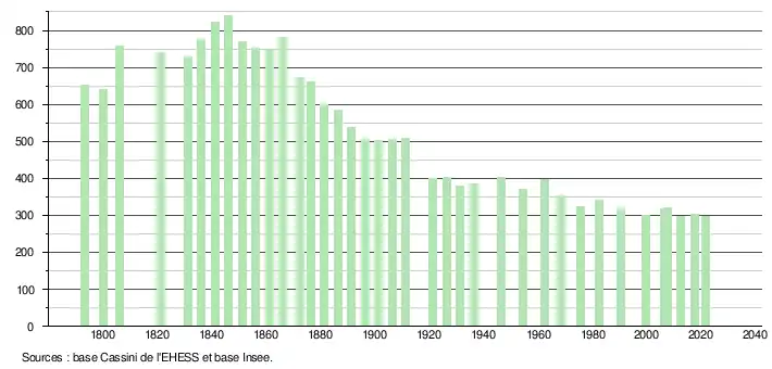 (Sources : Ldh/EHESS/Cassini jusqu'en 1999[24] puis Insee à partir de 2006[25].)