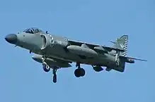 Le British Aerospace Sea Harrier est un avion à décollage court et à atterrissage vertical (STOVL) et à décollage et atterrissage verticaux (VTOL), de reconnaissance et d'attaque. Il est le deuxième membre développé de la famille des Harrier. Il est entré en service dans la Royal Navy en avril 1980 sous le nom de Sea Harrier FRS1 et est devenu officieusement connu sous le nom de « Shar ». Inhabituel à une époque où la plupart des chasseurs de supériorité aérienne navale et terrestre sont grands et supersoniques, le rôle principal du Sea Harrier subsonique est de fournir une défense aérienne aux groupes de la Royal Navy centrés autour des porte-avions.