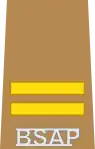 | Inspecteur en chef | Inspecteur | Officier de section | Officier de patrouille principal | Officier de patrouille | Sergent principal | Sergent chef | Sergent | Policier |