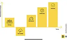 - Dissolution (étape ajoutée en 1977) : désengagement du personnel, en particulier pour les organisations fonctionnant en mode projet.