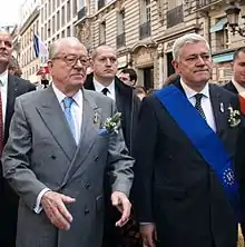 Le , contre l'avis de la direction du FN, il participe au rassemblement en hommage à Jeanne d'Arc organisé par Jean-Marie Le Pen, s'exposant ainsi à d'éventuelles sanctions[51]. Après que le bureau politique du FN a adopté une motion lui demandant de quitter ses fonctions au sein des instances du parti, il remet sa démission à Marine Le Pen, qui la refuse dans un « souci de conciliation »[52],[53].