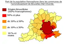À partir des lois de 1962 et 1963, les communes de l'arrondissement relevaient pour une part de la région de langue néerlandaise, officiellement néerlandophone, pour une autre part de la Région bilingue de Bruxelles-Capitale, ou encore pour les six communes à facilités de la périphérie bruxelloise (dotées d'un statut propre) d'un arrondissement administratif distinct[1], qui ne faisait pas partie de l'arrondissement de Hal-Vilvorde[2], et dès lors pas non plus de la région linguistique de langue néerlandaise[3]. En 1970, ces six communes ont toutefois été rattachées à la région de langue néerlandaise)[4].