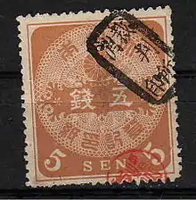 À la suite de la guerre sino-japonaise de 1894-1895, le Japon reçoit de la Chine lors du traité de Shimonoseki des réparations d'un montant d'environ 360 millions de yens qui représente trois fois le budget annuel de l'État. Ce transfert d'or apporte suffisamment de réserves pour que le Japon établisse un véritable régime d'étalon-or qui est adopté le . Il promulgue en 1897 la loi sur la frappe des monnaies qui fixe les parités de change par rapport au dollar américain et à la livre sterling à partir du pair or (un yen = 750 milligrammes d'or fin, soit un yen = 49 7/8 cents, et un yen = 2 9/12 shillings). Le yen est donc dévalué approximativement de moitié par rapport au pair initial de l'ère Meiji[7].