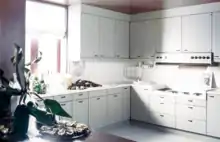 La caractéristique principale de la b3 est la paroi placée devant la véritable paroi et faisant office de base de support pour les appareils et les meubles de cuisine. La paroi multifonction ne porte pas seulement les meubles de cuisine et les appareils. Les jointures placées le long du mur permettent d'accrocher des couteaux, des supports pour rouleaux de papier et des étagères. De plus, des box pliants offrent un espace de rangement supplémentaire[16].