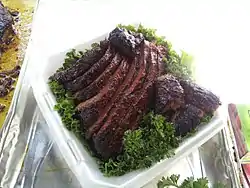 Les burnt ends (extrémités brûlées) sont de savoureux morceaux de viande coupés à partir de la moitié « pointe » d'une poitrine fumée[1]. Lorsque les muscles de la poitrine sont séparés, la « première coupe » ou « coupe plate » maigre est le pectoral profond, tandis que la « pointe » plus grasse, également connue sous le nom de « deuxième coupe », « extrémité grasse » ou « coupe triangulaire », est le pectoral superficiel. Une partie traditionnelle du barbecue de style Kansas City, les burnt ends sont considérées comme un mets délicat dans la cuisine au barbecue. Soit la poitrine est cuite entière, puis l'extrémité de la pointe est retirée et cuite davantage, soit la pointe et le plat sont séparés avant la cuisson. En raison de la teneur plus élevée en matières grasses de la pointe de poitrine, il faut plus de temps pour cuire complètement à tendre et rendre les graisses et le collagène. Cette cuisson plus longue a donné le nom de « burnt ends ». Parfois, lorsque le plat est terminé, la pointe est renvoyée au fumoir pour une cuisson supplémentaire. Certains cuisiniers ré-assaisonnent la pointe à ce moment.