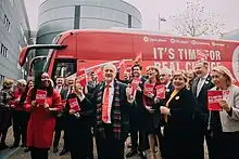 Au Royaume-Uni, les autobus de campagne sont désignés battle bus (littéralement en français, les « bus de bataille »). Ils apparaissent à la fin des années 1970. Auparavant, les journalistes suivaient les chefs des partis politiques dans des voitures séparées[1]. Les battle bus furent remarqués lors des élections générales britanniques de 1987 alors que David Owen et David Steel du SDP-Liberal Alliance ont chacun sillonné le pays dans des autobus assortis[10], chacun peint en jaune vif[11].