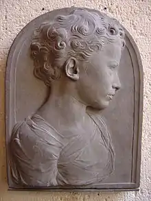 Viel-Castel indique que cette sculpture a été exécutée dans « une sorte de granit gris, très fin et très dur »[2]. Il l'assimilait à un « médaillon »[2], bien que le portrait en bas-relief ne s'inscrive pas dans un motif circulaire ou ovale mais dans un cadre au bord supérieur cintré.
