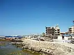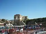 L’ancienne cité est entourée de murailles d’époque médiévale comportant des fûts de colonnes antiques inclus dans les murs. Cette méthode de construction est également visible au « Château de la mer » de saint Louis à Sidon (Saïda).