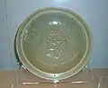 Plat à offrandes Tang d'inspiration sassanide, Chine du Nord, VIIIe siècle, terre cuite à glaçures plombifères "trois couleurs" sur engobe, décor incisé, d : 31 cm. Musée Guimet.