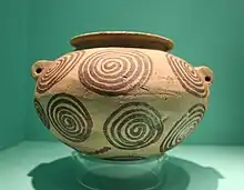 Depuis le chalcolithique, la technique du plateau tournant est utilisée pour le montage de récipients. Celle-ci provient peut-être du besoin « de donner au récipient à former un arrondi uniforme du corps et surtout de l'ouverture ». Cette technique est clairement reconnaissable par les traces de tournage horizontales sur l'ouverture[17]. À la différence du tour de potier, les mouvements de rotation ne sont pas centrés faute d'un axe fixe[21].