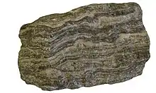 Gneiss, roche métamorphique constituant une des grandes familles des formations cristallines.