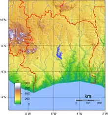 Topographie de la Côte d'Ivoire.
