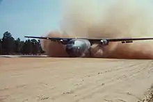 Pour l'atterrissage, il est équipé de volets hypersustentateurs, d'aérofreins et de « reverse » (inversion du pas hélice) qui permettent des atterrissages très courts. Les approches dites « grande pente » (10-15°) limitent les risques d'être touché par des missiles sol-air portables ou des armes légères tirant depuis le sol (caractéristique que n'a pas son concurrent le C-130). Par exemple à Sarajevo, où un G-222 italien avait été abattu à l'atterrissage par un SAM portable[14], les C-160 descendaient à un rythme de 4 000 pieds/minute. Les atterrissages de type « poser d'assaut » permettent un déchargement rapide de personnel ou de matériel sur la piste, suivi d'un redécollage immédiat. Cela limite au minimum le temps d'exposition aux tirs ennemis.
