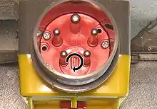 Les cinq broches sont positionnées en cercle (les phases sont dans l'ordre P1/P2/P3) avec le connecteur de terre plus gros et long. Pour certains moteurs dont le sens de rotation dépend de l'ordre de connexion aux phases, un adaptateur est utilisé pour inverser leur câblage.