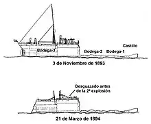 L'Alfonso XIII, construit en 1889. Une partie de son équipage — 32 en plus du capitaine — est mort pendant les opérations d'extinction de l'incendie sur le Cabo Machichaco. L'Alfonso XIII, construit en 1889. Une partie de son équipage — 32 en plus du capitaine — est mort pendant les opérations d'extinction de l'incendie sur le Cabo Machichaco.
