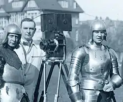 Pour permettre une visée confortable quelle que soit la focale, on a aussi utilisé une lunette de visée, dite aussi « viseur clair ». Ce dispositif, dont l'optique est similaire à celle d'une longue vue, était celui de tous les appareils bon marché. On le trouvait aussi sur plusieurs appareils photographiques professionnels et sur la plupart des caméras de cinéma avant 1950. Il montre l'image à l'endroit dans un « viseur optique[54] », pouvant être corrigé selon l'œil de l'opérateur. Il présente le même inconvénient de parallaxe que le viseur sport, mais on a généralement implanté la lentille d'entrée plus près de l'axe de l'appareil, et quelques modèles ajustent le cadre de visée suivant la distance réglée sur l'objectif, de façon à réduire l'erreur. En cinéma, le viseur clair pouvait quelquefois se détacher de la caméra, pour pouvoir chercher un point de vue sans avoir à déplacer le lourd appareil, un repérage nécessaire quand le déplacement et le positionnement de l'appareil de prise de vues ne doivent souffrir d'aucune improvisation (forte plongée, chariot de travelling à installer, effets spéciaux (écran vert), etc.). On n'a pas tardé à fabriquer des chercheurs de champs, petites lunettes d'approche avec un cadre, réglable ou interchangeable pour un format correspondant à l'image cinéma et un réglage de grossissement correspondant aux focales des objectifs de prise de vues. Cet objet est un emblème du réalisateur de films[55], comme la cellule est celui du directeur de la photographie, exprimant ainsi leurs responsabilités respectives.